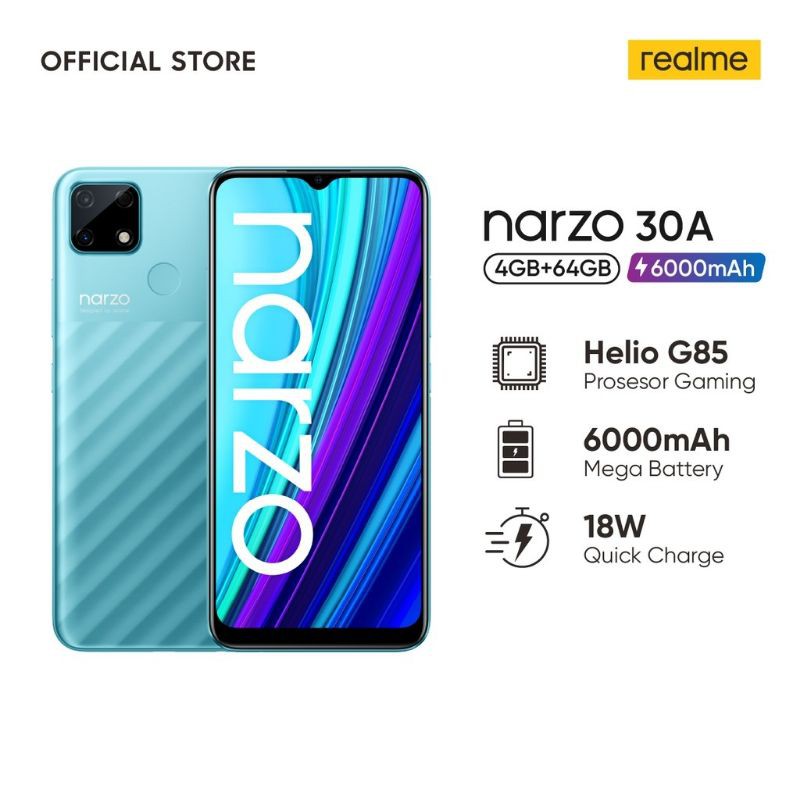 Actual results vary by environment. Realme narzo 30a android smartphone. Features 6.5″ display, mediatek helio g85 chipset, 6000 mah battery, 64 gb storage, 4 gb ram. Released 2021, march 05 205g, 9.8mm thickness android 10, realme ui 32gb/64gb storage, microsdxc. The narzo 30a reverse charging function requires an otg cable, which must be.